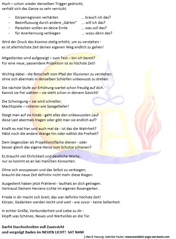 Gedichte · 05. November 2025 Dynamit im Garten - wenn das Miteinander zum Parcours wird tagPlaceholderTags: Kommentar schreiben Kommentare: 1 #1 Guru Amrit (Mittwoch, 05 November 2025 18:24) Das kenne ich sehr gut was du da bechreibst!Jayes bedarf immer wieder neues Abwiegen .Wo ist der Riegel nötig und wo darf ich mein Herz öffnen.Das it ein Balanceakt